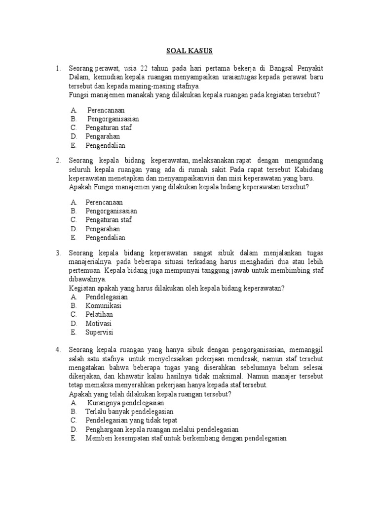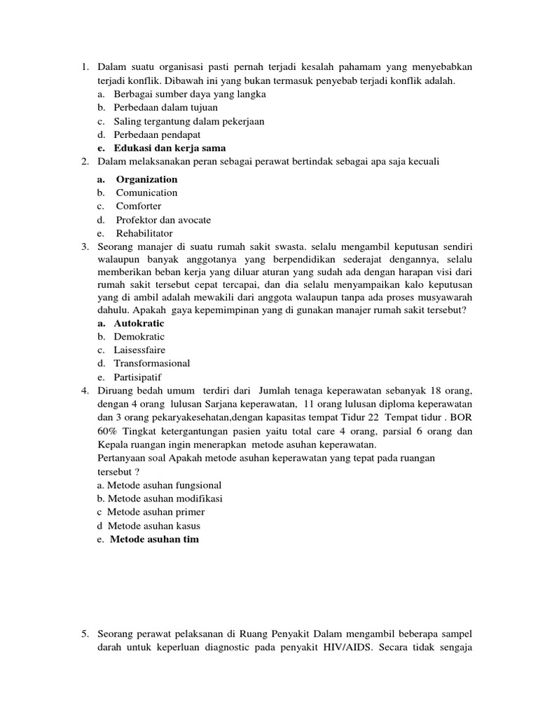 Soal Manajemen Keperawatan from imgv2-1-f.scribdassets.com Materi dan contoh soal manajemen keperawatan khususnya : Suatu langkah untuk menetapkan, mengelompokkan dan mengatur berbagai macam kegiatan, penetapan tu. Contoh soal uji kompetensi manajemen keperawatan. Dalam melaksanakan peran sebagai perawat pelaksana harus bertindak sebagai apa saja, kecuali : No soal dan pembahasan 1. Aug 01, 2018 · dibawah ini merupakan contoh soal uji kompetensi (ukom) manajemen keperawatan dan kunci jawabannya. Dec 25, 2018 · rujukan : Halo, apa kabar, kali ini kita akan membahasa mengenai contoh soal ukom manajemen keperawatan, semoga contoh soal dari artikel ini dapat bermanfaat.
